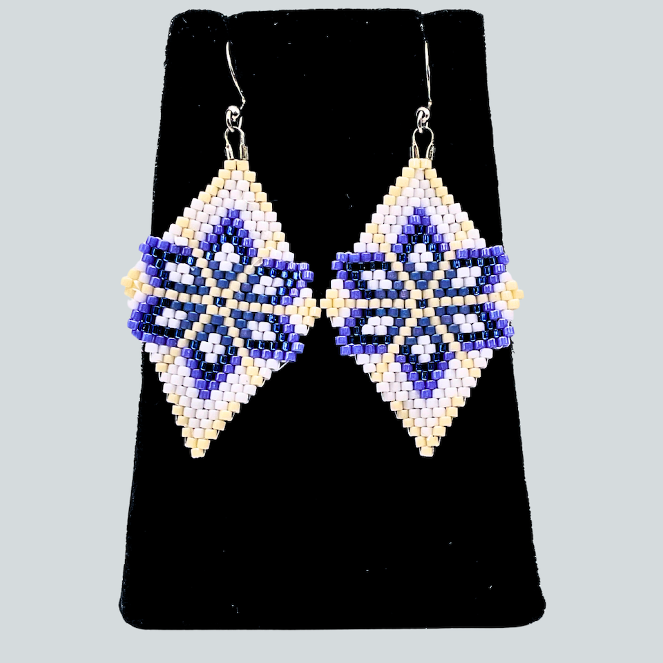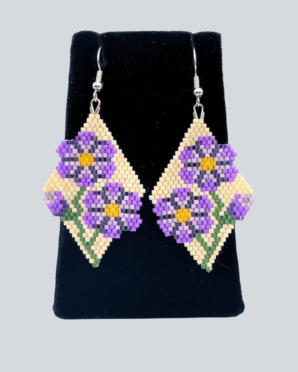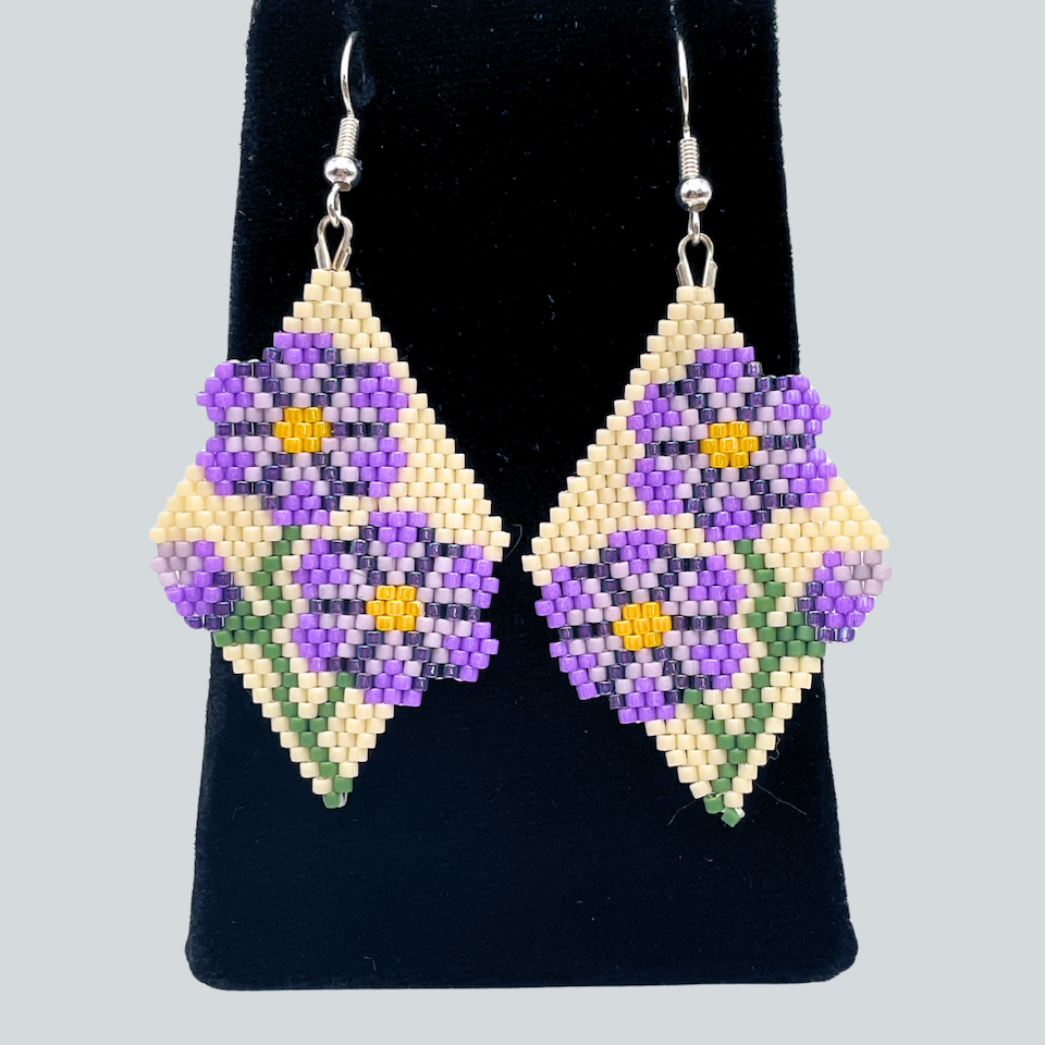 Angel Moreno comes from an Alutiiq family with ties to the community of Karluk. She lives in Kodiak and learned to bead from her mother, Beverly Moreno. Angel finds beading fun and relaxing and enjoys seeing a pattern come together as she works. She studies designs in the world around her to add to her jewelry and takes inspiration from the seasons and holidays. Angel is an Alutiiq Seal Artist who sells her work at the Alutiiq Museum Store.