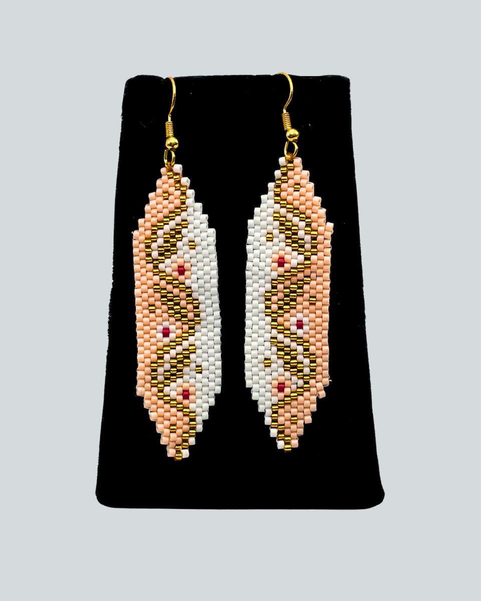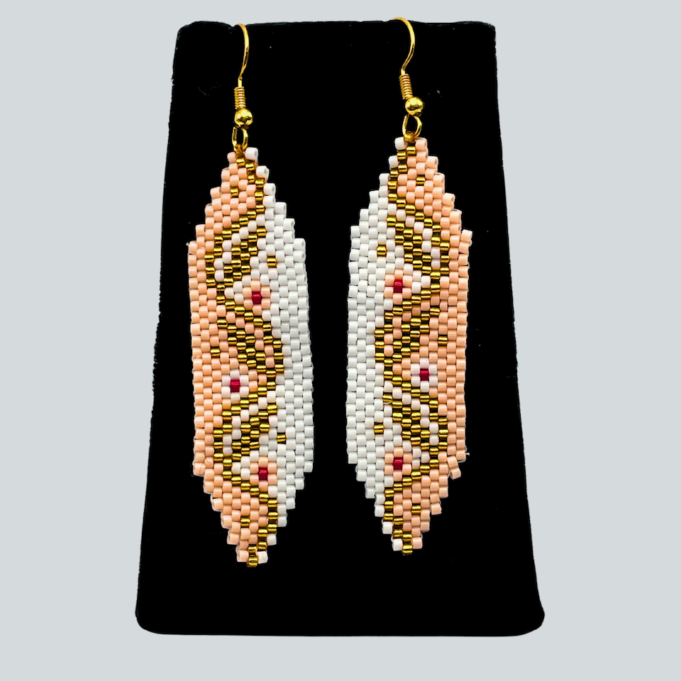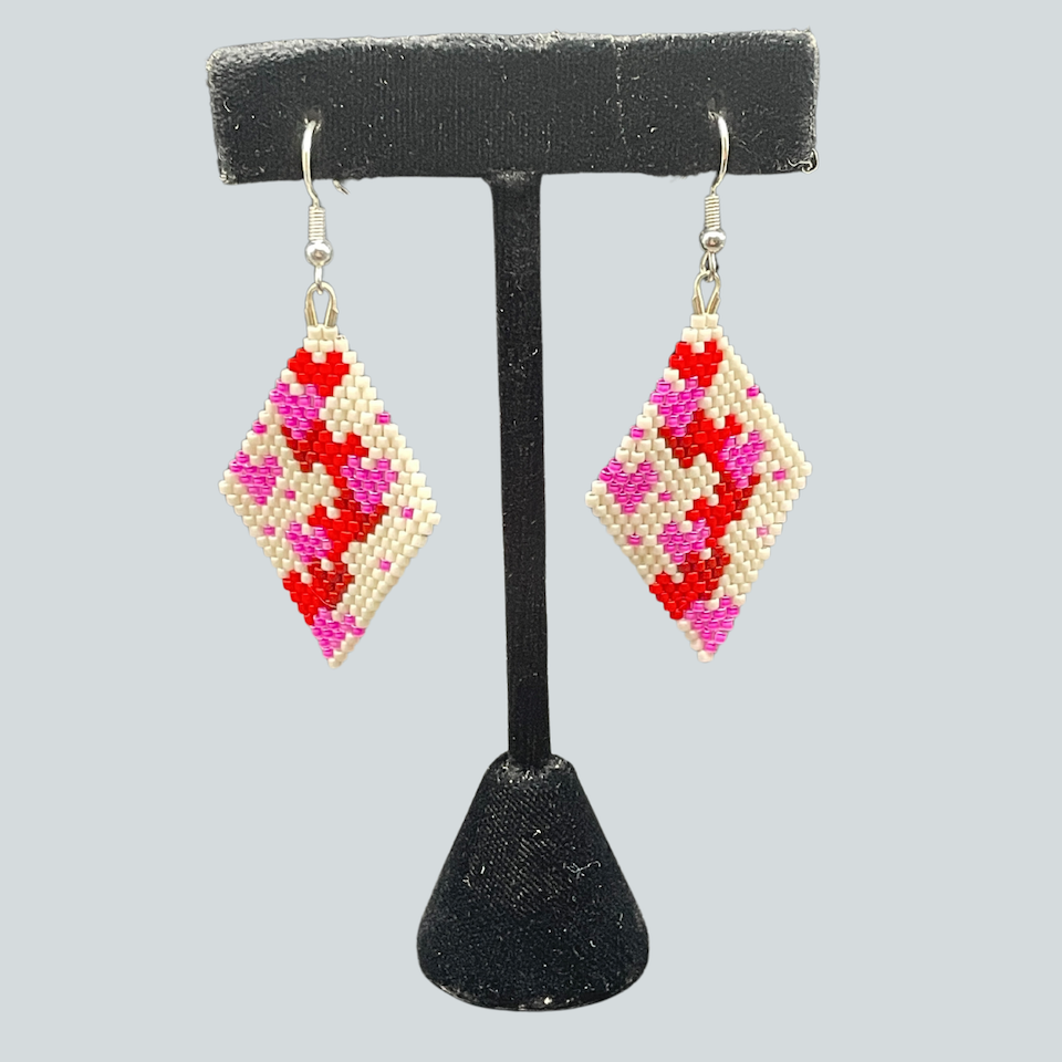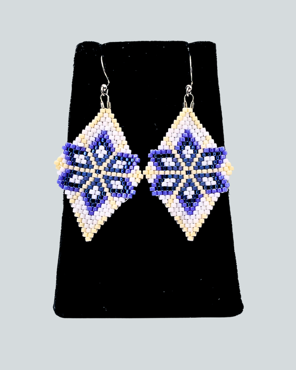 Angel Moreno comes from an Alutiiq family with ties to the community of Karluk. She lives in Kodiak and learned to bead from her mother, Beverly Moreno. Angel finds beading fun and relaxing and enjoys seeing a pattern come together as she works. She studies designs in the world around her to add to her jewelry and takes inspiration from the seasons and holidays. Angel is an Alutiiq Seal Artist who sells her work at the Alutiiq Museum Store.