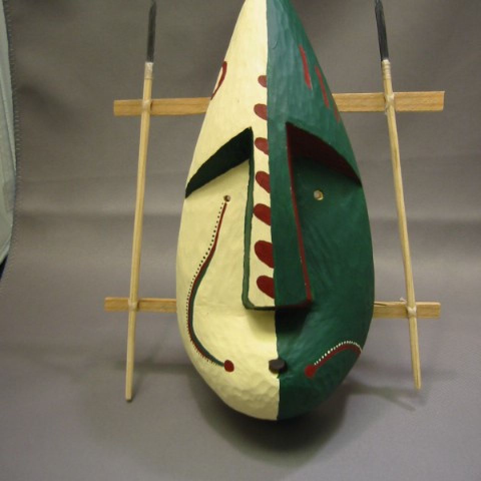 Born and raised in the Kodiak Alutiiq community of Old Harbor, Doug Inga spent his childhood making slate arrows like those used by his ancestors for seal hunting. As an adult, he became inspired by the artwork of Jacob Simeonoff and began carving. Today, much of his inspiration comes from books illustrating Alaska Native art and artifacts. A recent trip to France, to view the historic Pinart collection – 19th century masks from Kodiak, has also had a major impact on his work. Inga is particularly inspired by Alutiiq bowls, which he enjoys making. He hopes to perpetuate Alutiiq culture through his artwork.
