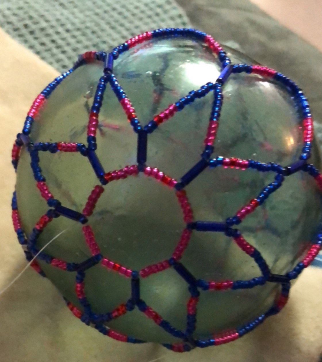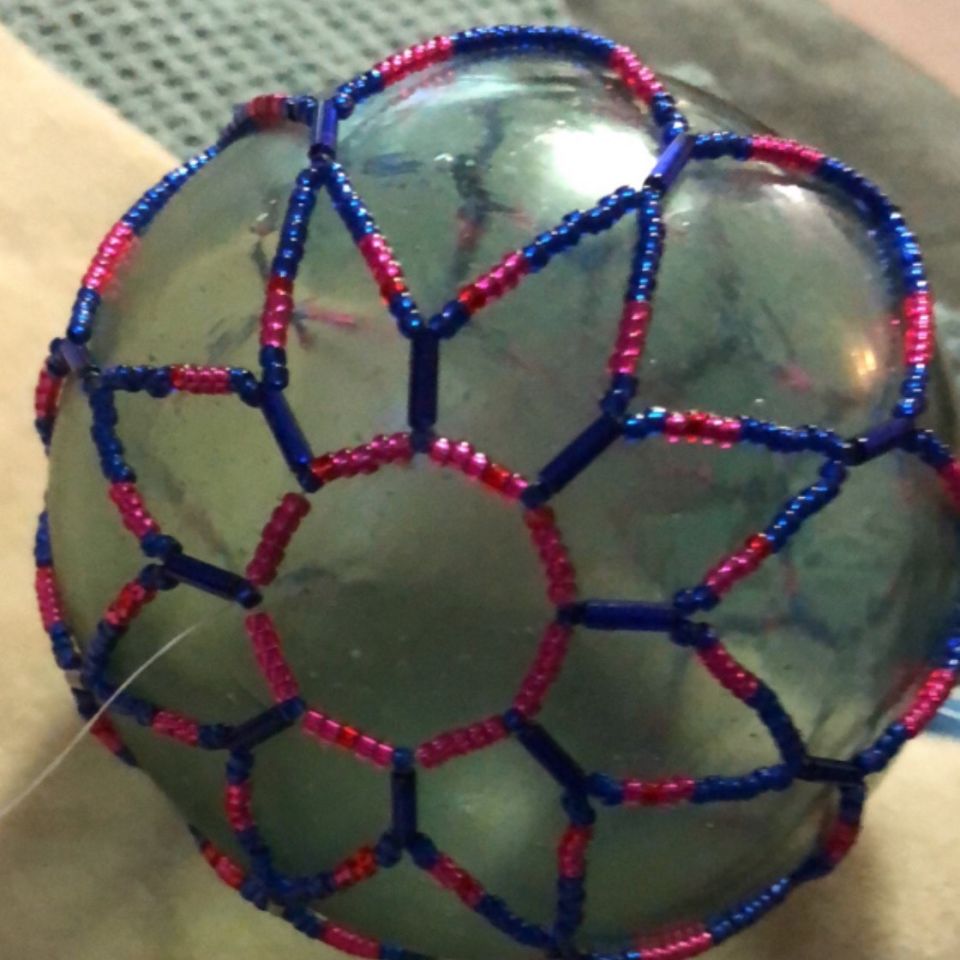 Orloff learned to sew and bead from Susan Malutin, June Pardue, and Leona Haakanson Crow. She enjoys studying ancestral pieces. She doesn’t replicate ancestral works but interprets them with a personal twist. Her artwork reflects the beauty of the Kodiak environment—especially wild flowers—and she enjoys collecting and working with beach glass. Orloff sells her work locally, by word of mouth and at events.
