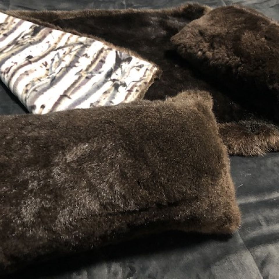 Alutiiq artist JJ Orloff has ancestral ties to the Alutiiq communities of Afognak, Larsen Bay, Karluk, and Chignik. She is a skin sewer who has been creating gloves, blankets, and pillows for more than five years. Orloff particularly enjoys working with Kodiak’s plush sea otter furs, but she also sews with a variety of local skins, including fox, seal, and salmon.