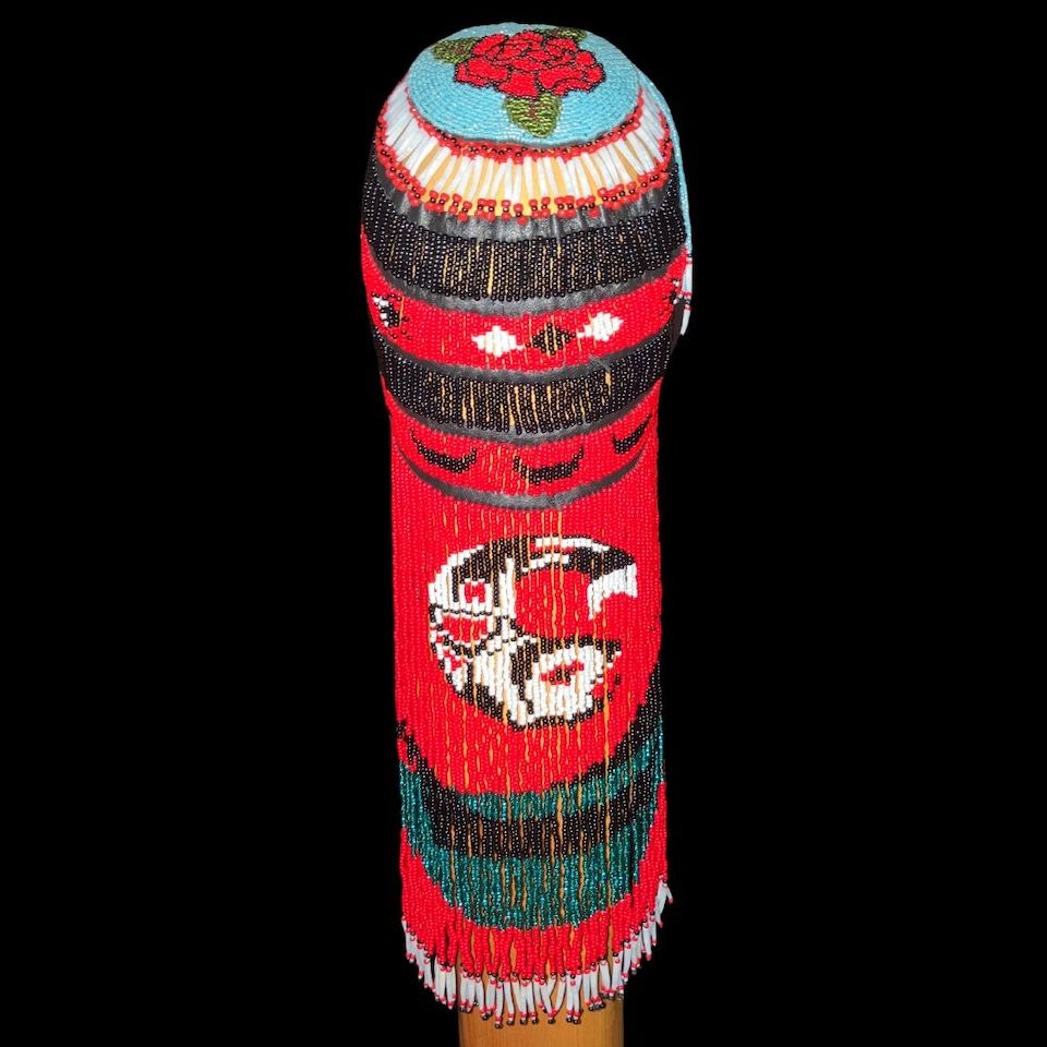 Raised in Washington state, Alutiiq artist Karla Nolen has been beadding headdresses since 2019. She is self- taught. Beading comes naturally to Karla and she has explored headdress-making with some support from resources provided by the Alutiiq Museum. Karla explains.