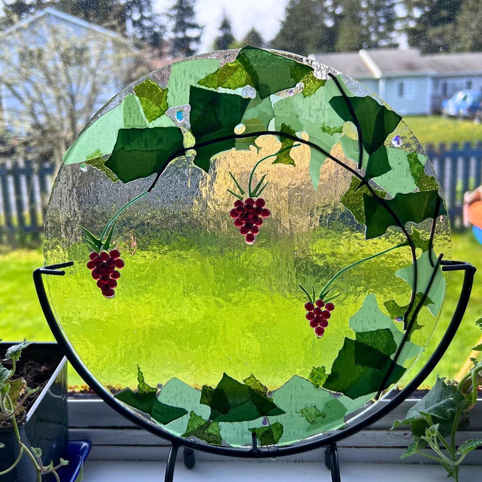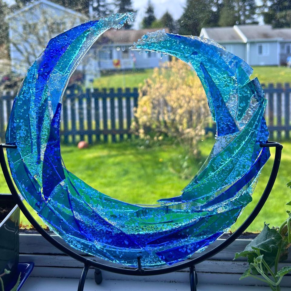 “My love for wildflowers and the sea reflects in my creations from fused glass fireweed and fused glass jelly fish to mosaic salmon and mosaic octopuses, to name a few. Many of the items I create have ties to cultural heritage.”