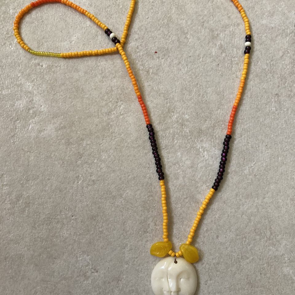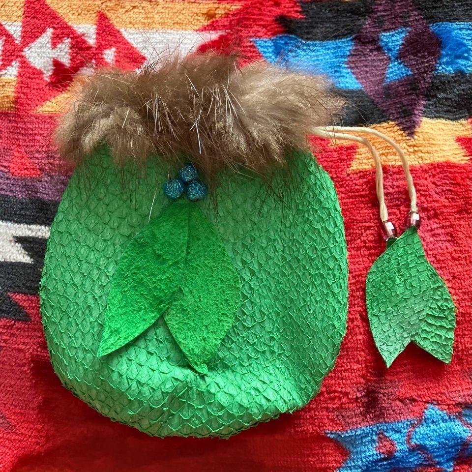 Sky Pahmeier-Olson has been exploring the arts for more than six years.  She learned to sew from her mother, took drawing classes, and taught herself to bead by examining the work of other beaders and experimenting with techniques. Nature is Sky’s greatest inspiration, but she also develops ideas in conversations about art with other people.  Sky enjoys art as a means of self-expression and a way to connect with cultural traditions and her Alutiiq ancestors.