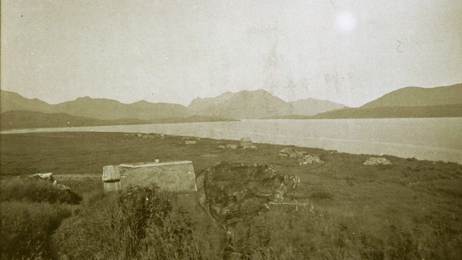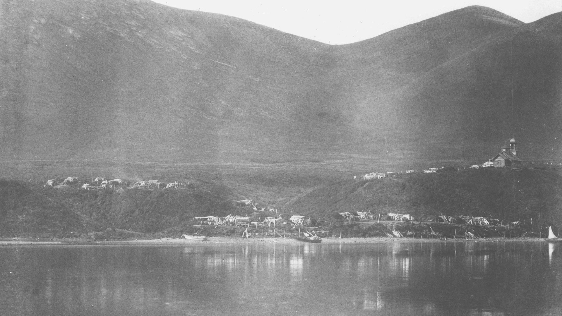 In the 1860s, people who were displaced from the village of Qaguyaq—Old Kaguyak by the 1838 smallpox epidemic returned to their homeland. Kaguyak village became a large settlement with many homes, several stores, and the Russian Orthodox Chapel of the Holy Apostles Peter and Paul. The community rested on a small spit fronting a freshwater lake at the head of Kaguyak Bay.