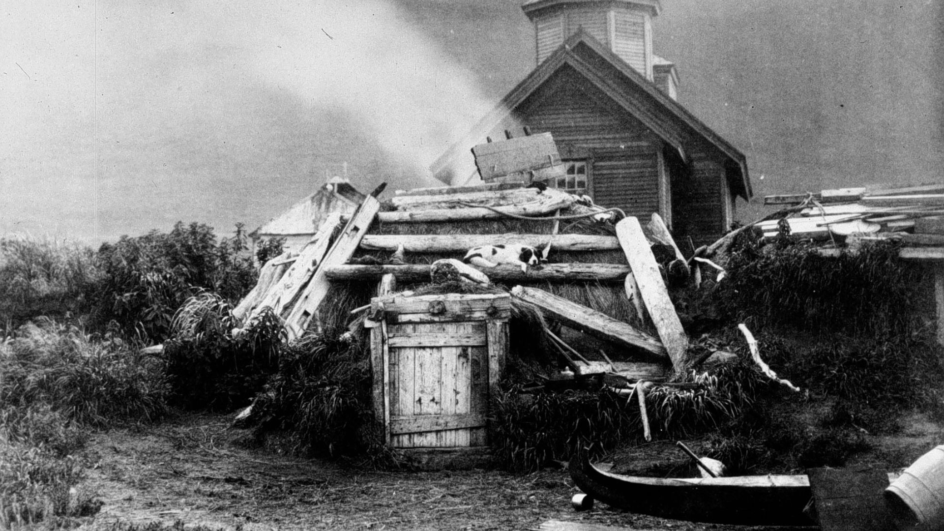 The village population dwindled in the early twentieth century. Two disasters led to abandonment. First, the 1912 Katmai ashfall decimated plant life. There was little for cattle to eat, and hungry bears killed much of the herd. Then, a 1918 epidemic of the flu killed entire households. Most of the survivors moved away.