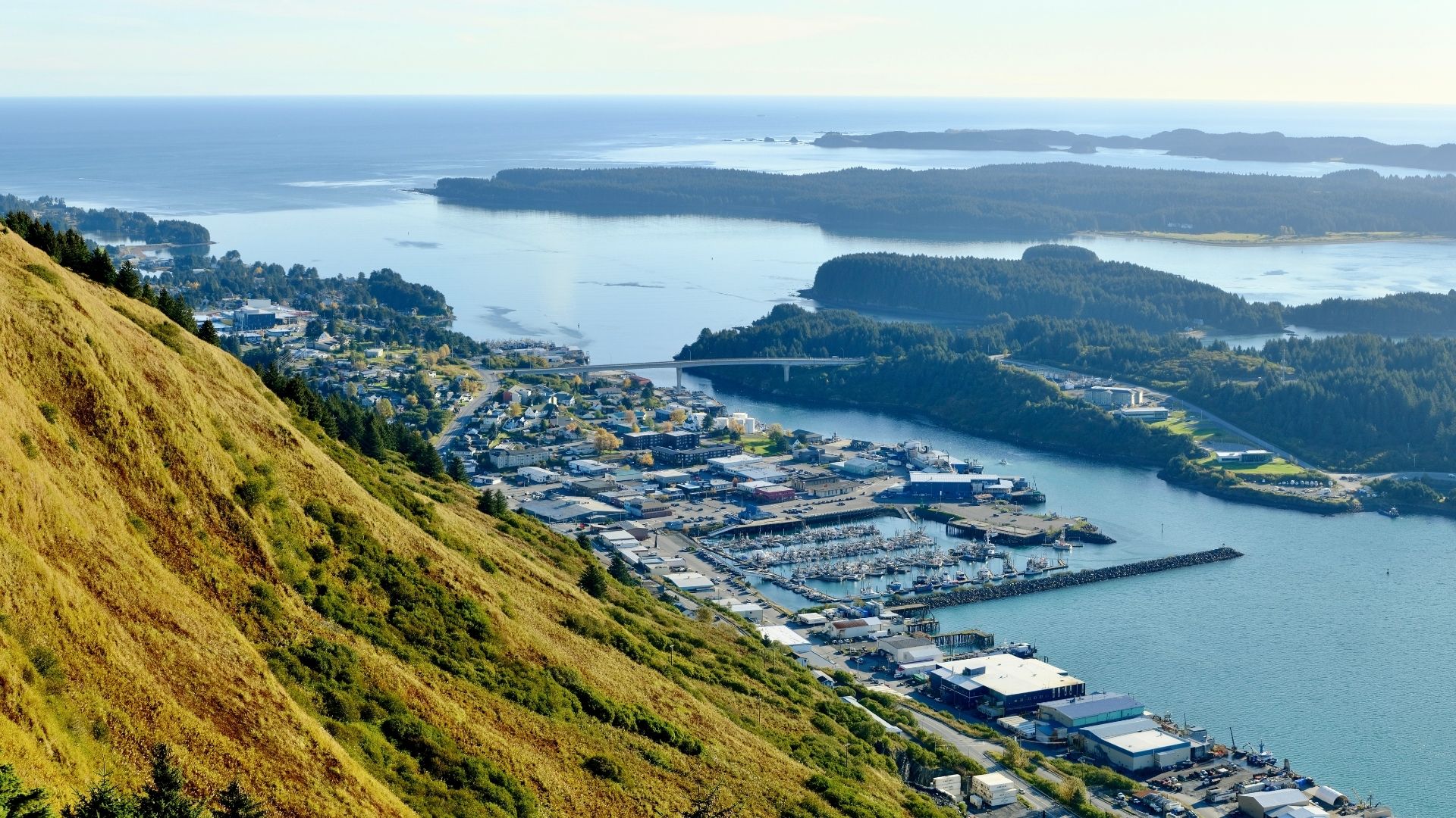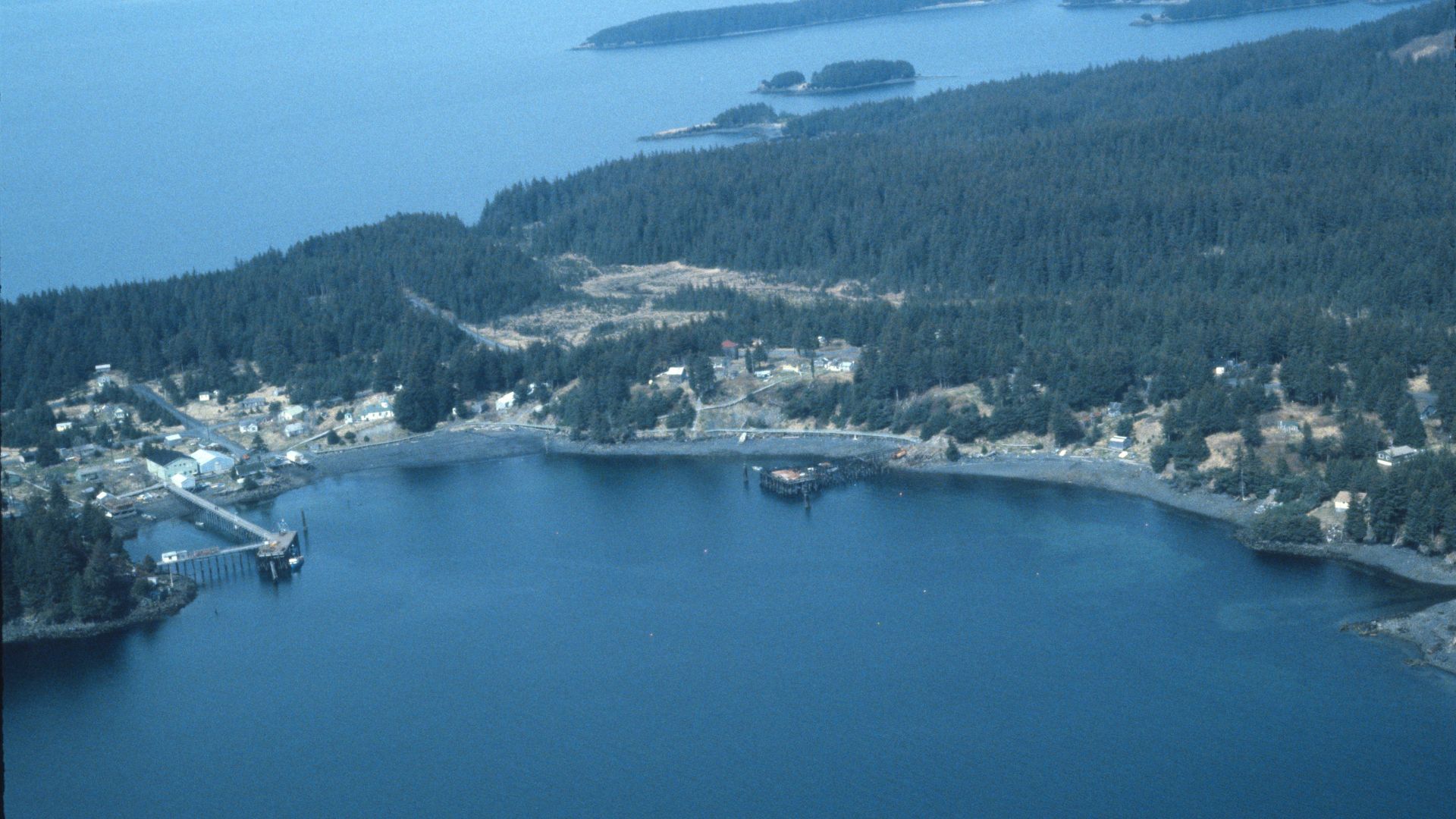 Larsen Bay is a cluster of houses, large metal-roofed cannery buildings, sturdy wooden docks, and boardwalks overlooking Uyak Bay. Named for Unga Island entrepreneur Peter Larsen, the present community developed in 1888 when the Arctic Packing Company built facilities opposite the present village.