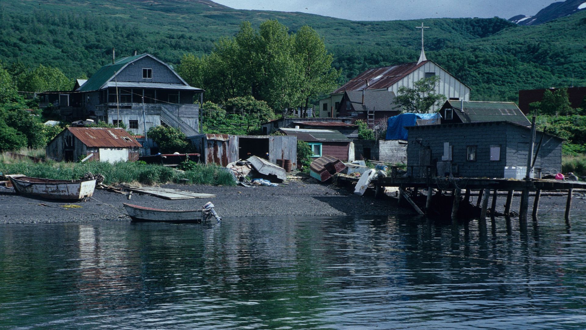 Old Harbor has long been a refuge for people from other communities. Survivors of the 1838 smallpox epidemic were resettled in the village, and in the twentieth century, people from Aiaktalik and Eagle Harbor joined the community. In 1964, Old Harbor was badly damaged by the tsunamis generated by the Great Alaska Earthquake. Just one of the 35 homes and the community’s Three Saints Russian Orthodox Church survived the flood. Families had to rebuild their homes.
