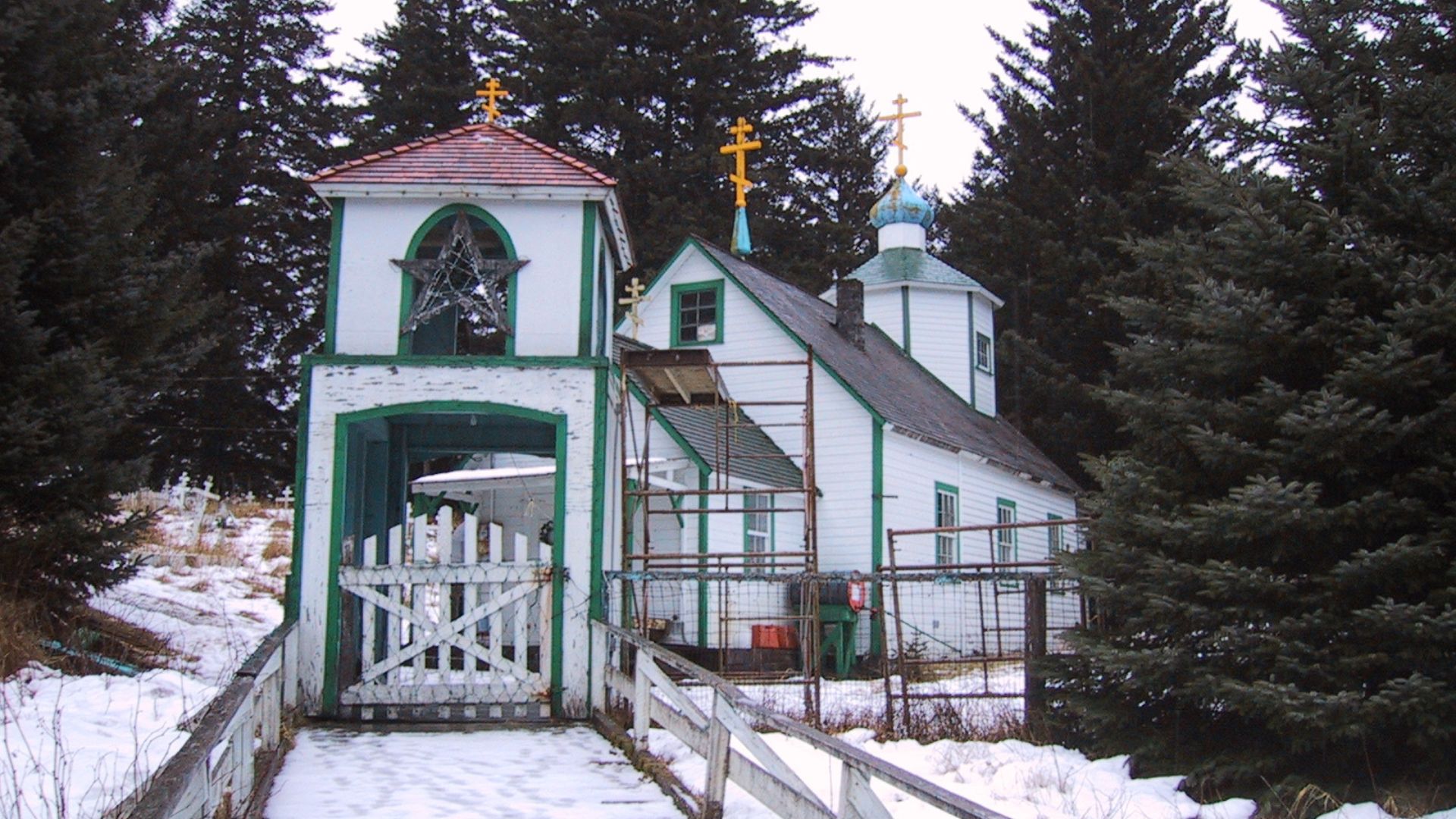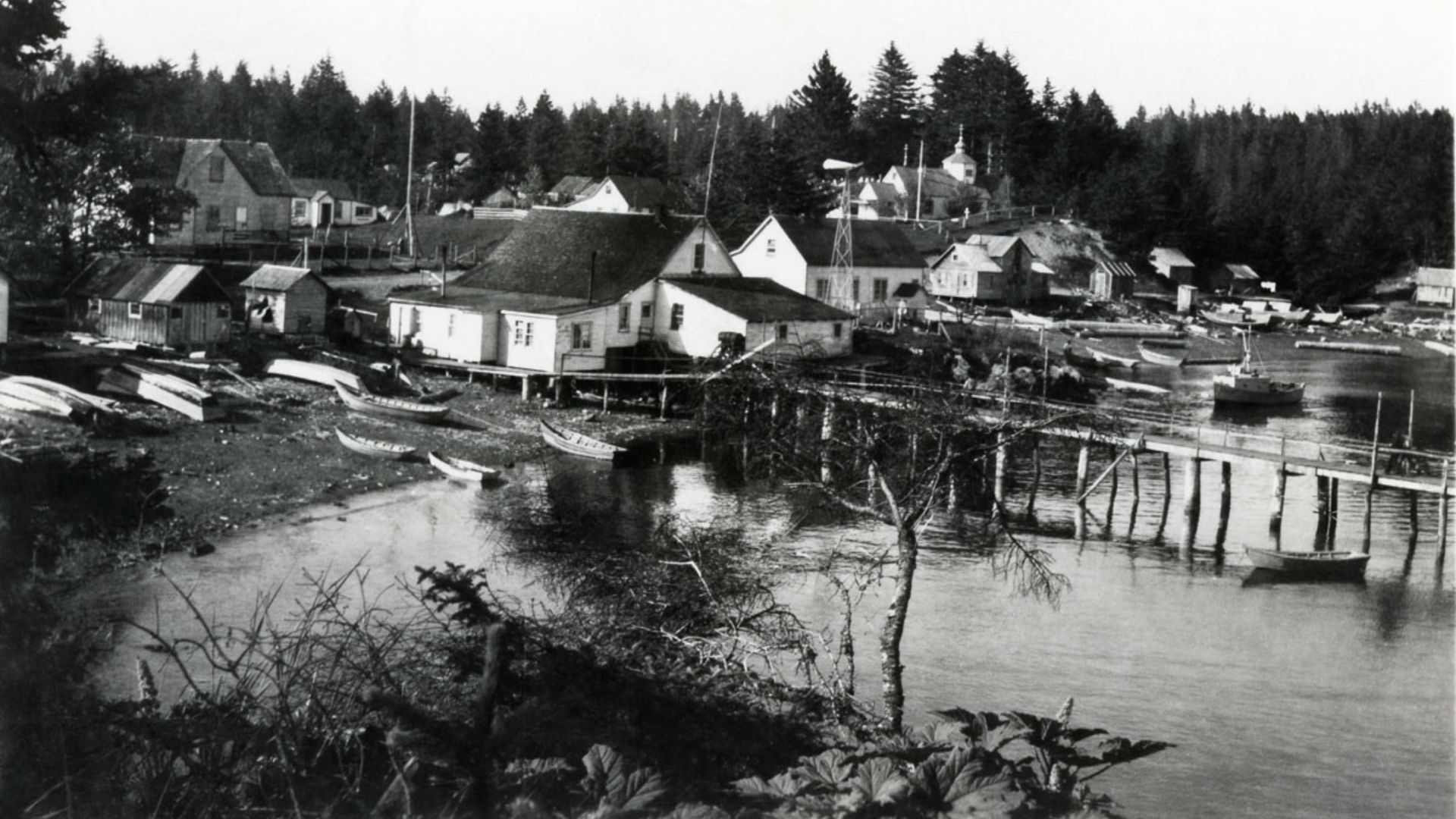 For over a century, Afognak had two distinct parts. Nasqualek—Aleut Town, at one end, was home to Alutiiq families. Taryuq—Russian Town, at the other end, housed retired Russian men, their Native wives, and Creole children. The communities had vegetable gardens, a fleet of wooden rowboats, a schoolhouse, and a Russian Orthodox chapel—the Church of the Nativity of the Theotokos.