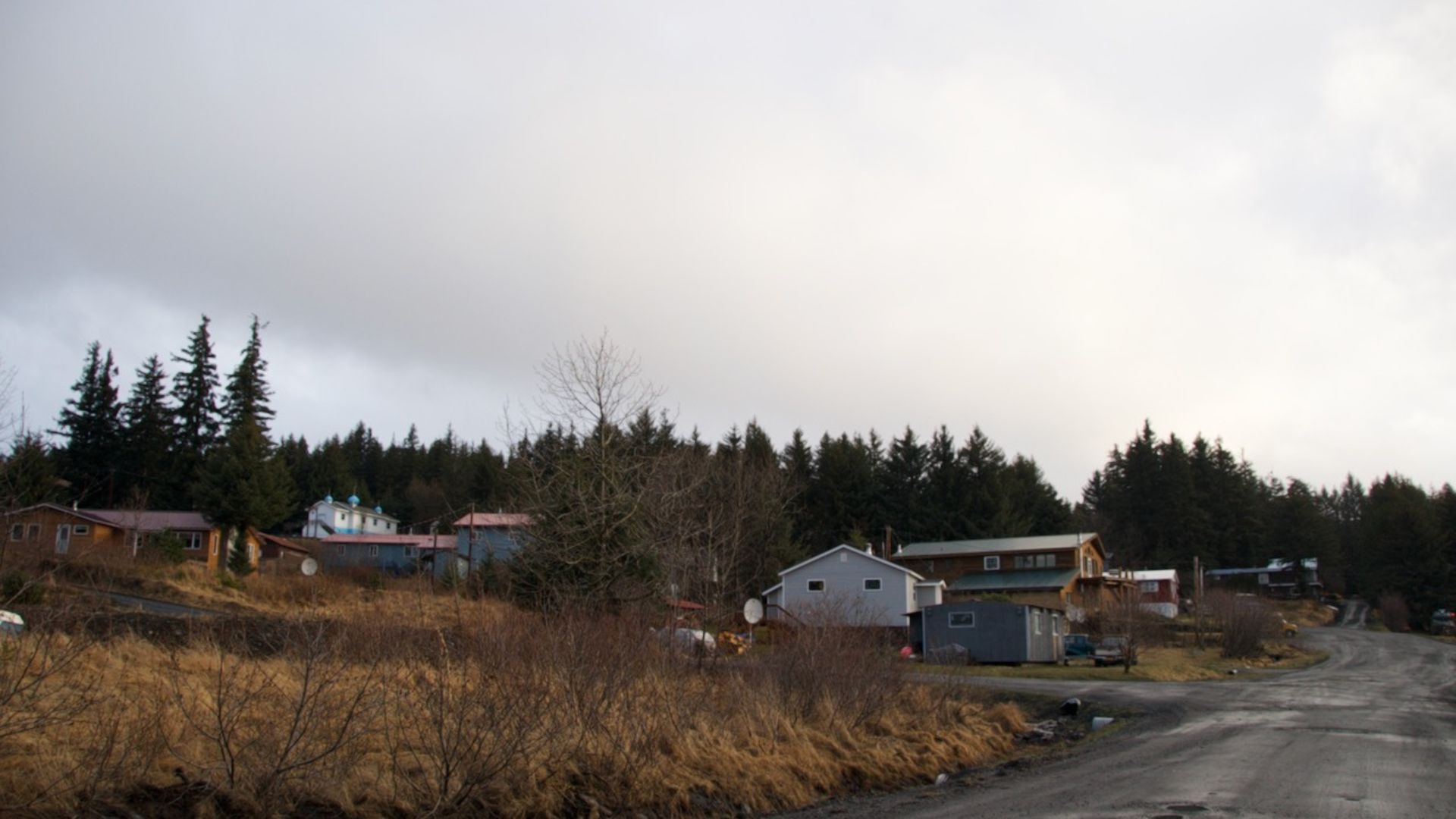 Ouzinkie lies in the forests of Spruce Island, just ten miles from Kodiak. The village’s name comes from the Russian word uskiy, meaning narrows. It refers to the slender strait separating Spruce Island from Kodiak Island. It also reflects Ouzinkie’s origin as a nineteenth-century retirement community for Russian traders.