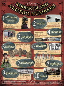 The Alutiiq/Sugpiaq people speak Sugt’stun, or simply Alutiiq. Some people also refer to the language as Alutiit’stun—which means “like an Alutiiq.” This language is one of five related languages spoken across the North American Arctic. The Unangax̂ people of the Aleutian chain speak Unangam Tunuu, which belongs to the “Aleutian” branch. The remaining languages belong to the second branch. They include Sugt’stun spoken in the Gulf of Alaska, Yugtun and Cugtun spoken in western Alaska, and Iñupiatun/Inuktitut and Kalaallisut spoken across northern Alaska, Canada, and Greenland.