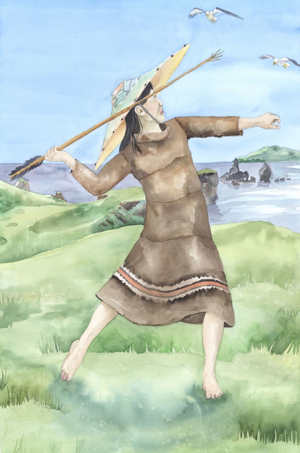 “My art reflects a journey to learn more about myself, where I came from, and introduce people to Alaska Native culture. I am so honored to be a part of this project. It allowed me to sit with our ancestors and try to imagine the life they led. I would turn on wave and seagull background sounds and my surroundings would drop away.”