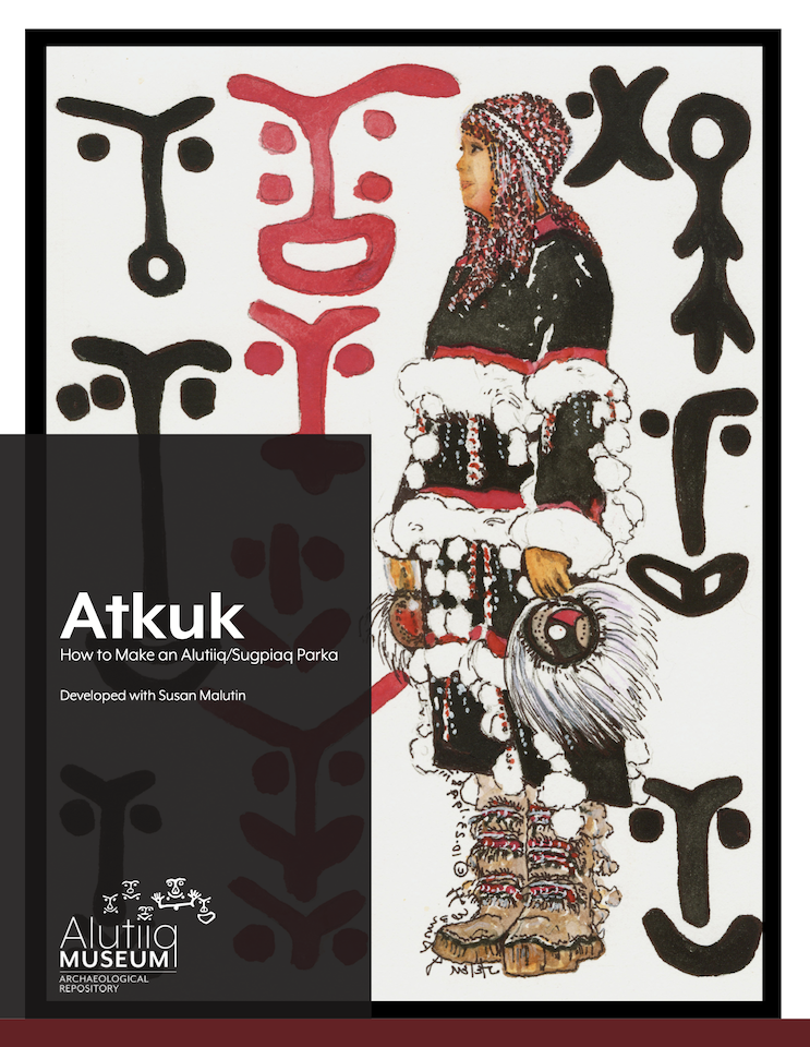 The snow falling parka is an iconic piece of Kodiak Alutiiq clothing. For hundreds of years, Alutiiq people have worn black garments, decorated with red bands and tufts of white fur. Now you can learn to make a fabric version. Open this booklet for step-by-step instructions. Find a supply list, measurements, and sewing directions. It’s all provided by Elder Susan Malutin and accompanied by online video tutorials.